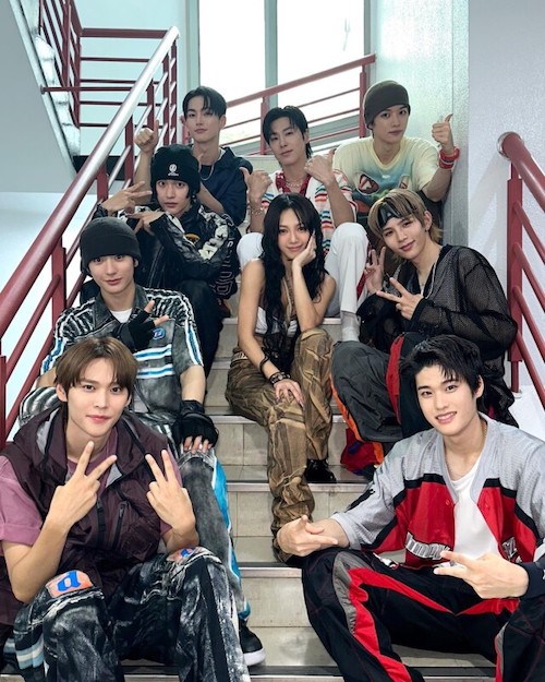 公開された写真には、SBS公開ホールの階段に、なかよく座っているユンホ、ヒョヨン、「RIIZE」のメンバーの姿が写っています。