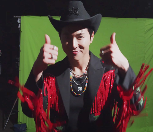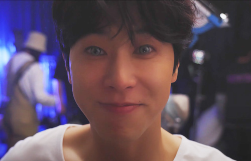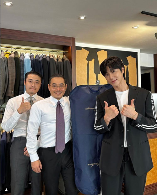ロゴが入ったスーツを嬉しそうに見せてくれるユノがいた。