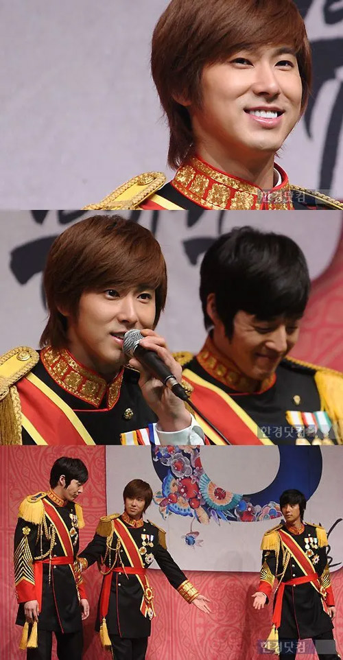 この朗報は、早くから韓流ファンの間で話題となっており、制作発表会が待たれていた。今回のミュージカル「宮」では、主役のイ・シン王子にユンホと、実力派俳優キム・ドンホと歌手RUNの3人がキャスティングされている。皇太子妃シン・チェギョン役はクァク・ソンヨンとシン・ウィジョンが務める。皇太子姿のユンホたちが一同に壇上に並ぶと、まさに舞踏会の会場のような華やかさ。そんな彼らにはフラッシュの嵐が浴びせられた。会場には、数十人のファンも来場しており、韓国、日本、中国など各国のユンホ(ユノ)のファンクラブは、彼の初ミュージカル挑戦を応援するため声援が聞こえるようだ。