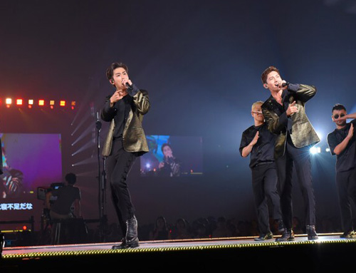 「SMTOWN」のステージのクライマックスを飾った東方神起の2人は「Truth」でラグジュアリーにライブをスタートさせる。「The Chance of Love」を終えてのMCではチャンミンが「すてきなSMアーティストのパフォーマンスだったり、SUPER JUNIORのトークショーだったりを皆さんに楽しんでもらいつつ……」とSUPER JUNIORに言及。「後ろでこの2人も爆笑してました(笑)」と明かした。そして彼らは「いろんなコラボもあったけど、東方神起のステージ待っててくれましたよね?」と言うとトロッコに乗り込み、「Hot Hot Hot」でアリーナの客席通路へ。サビのダンスをファンと一緒に踊って大きな会場をひとつにまとめ上げていく。ラストに披露された「MIROTIC」では力強いボーカルと共に圧巻のダンスを披露。会場中が赤い光に染まる中、最後に大きな存在感を残してトリの役目を務め上げた。