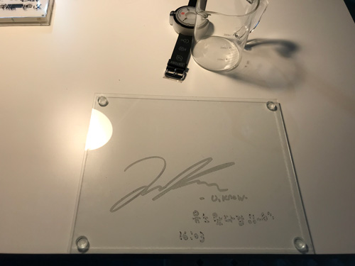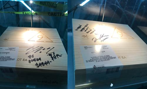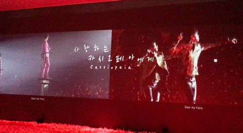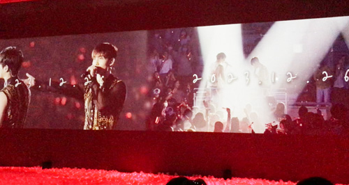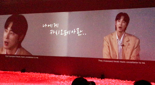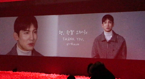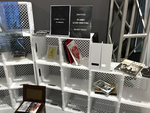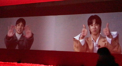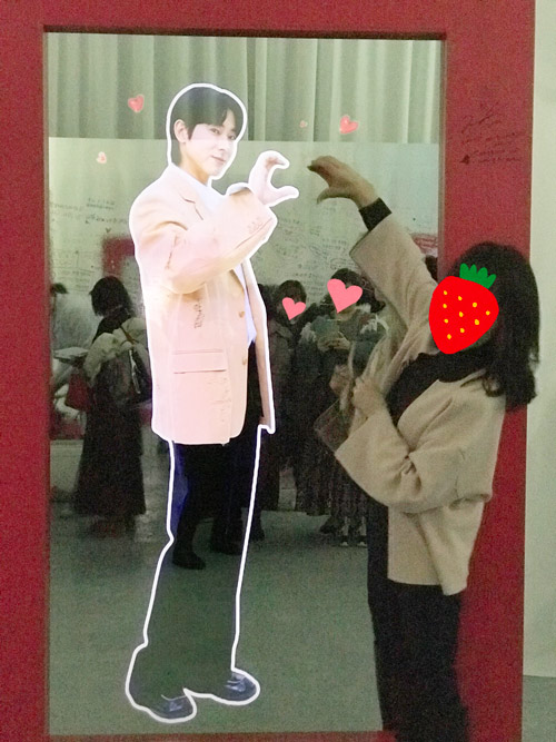ユノとチャンミンが映し出されているパネルが設置してあるコーナー。