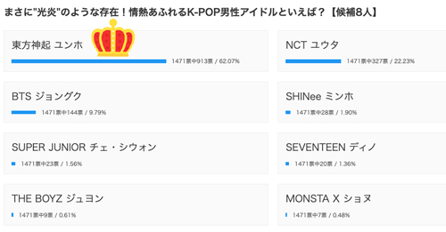 見事1位に輝いた『情熱溢れるK-POP男性アイドルといえば!』