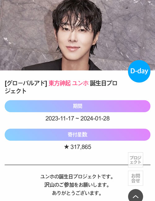 今まで、『お誕生日企画』としてユノ、チャンミン、2人宛など