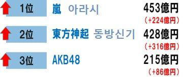 韓国のアルバム、シングル、DVDの売上:約400万ドル(出典:オリコン)