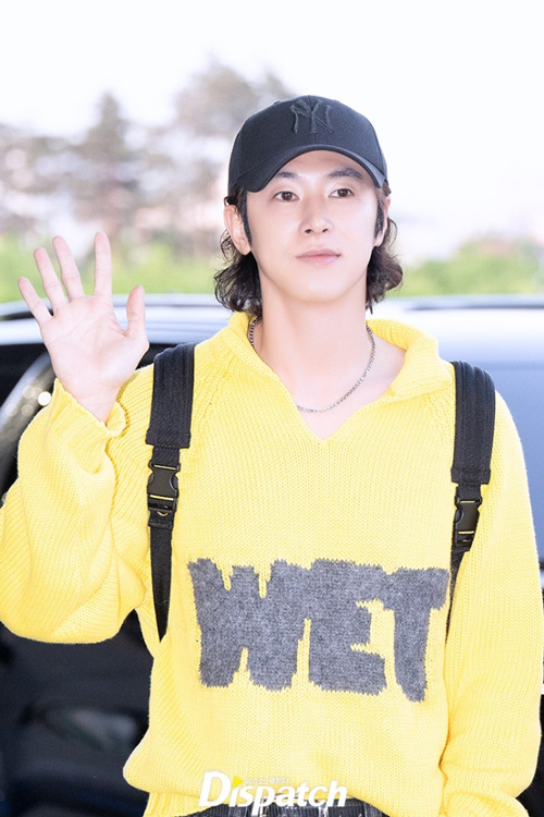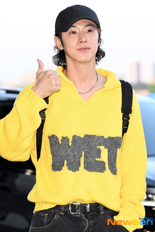 ユンホは同日、ジーンズに黄色いニットでダンディーな空港ファッションを演出した。 ほのぼのとしたビジュアルが目を引きました。