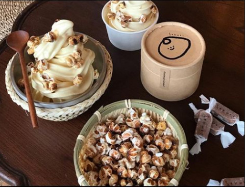 강냉이소쿠리(とうきびのざる)江原道の特産物であるトウモロコシで作ったトウモロコシを現代風にアレンジしたデザートカフェです^^ メニューは、とうきびアイスクリーム、生キャラメル、タルゴナとうきび、コーンあんまん、トウモロコシラテ、コーンコーヒーをご用意しております。