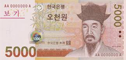 5,000ウォン札の栗谷李珥(ユルグク・イイ)と一緒にパチリ📷