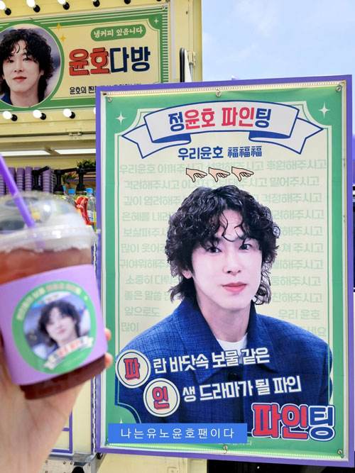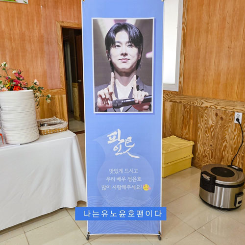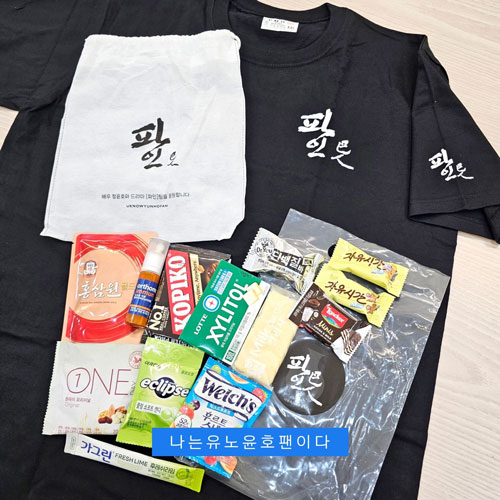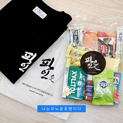 드라마 [파인]의 배우 정윤호와 배우분들, 스탭분들을 위한 뷔페와 커피차, 단체 티셔츠와 간식 서포트를 준비했습니다. 🎁