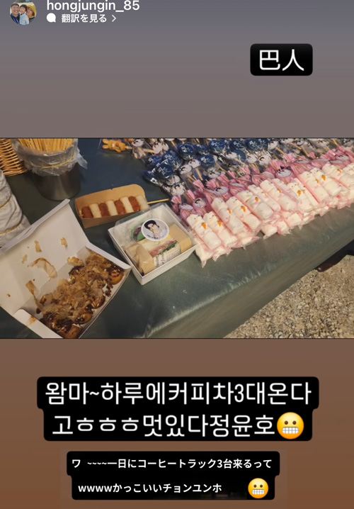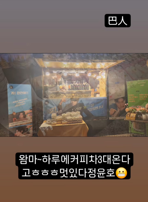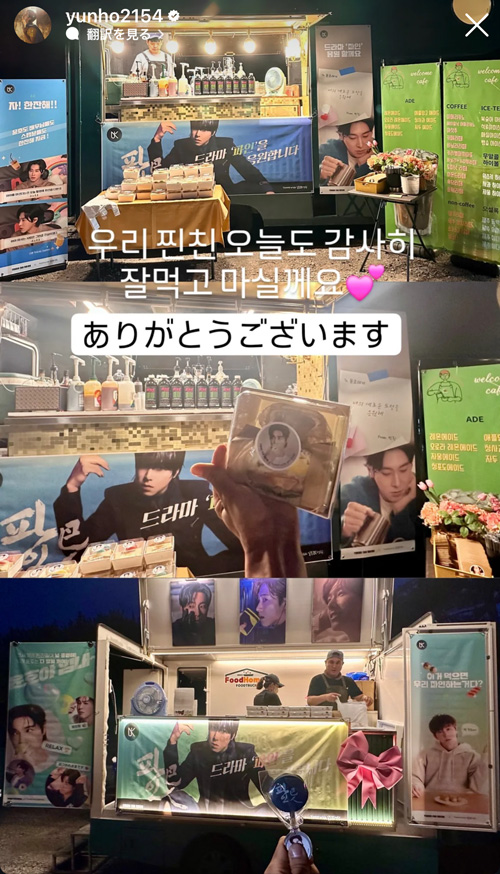 ユンホは15日、自身のInstagramストーリーズに「パク・ソヨン監督さま、カフェカーありがとうございます。元気を出して撮影します」「僕の親しい人たち、今日もありがたく、おいしく食べて飲みます」というコメントを付けて写真を掲載した。