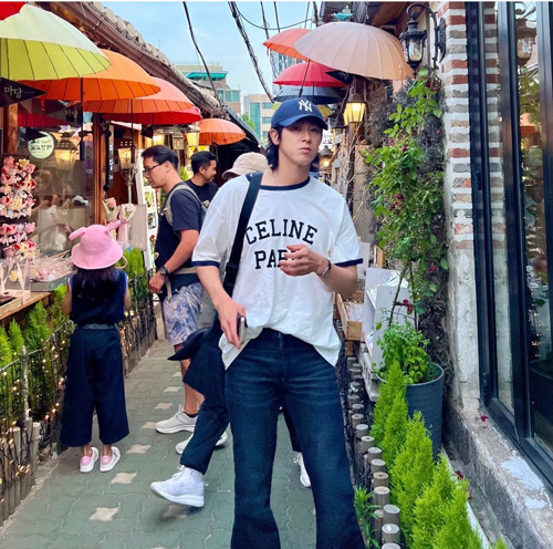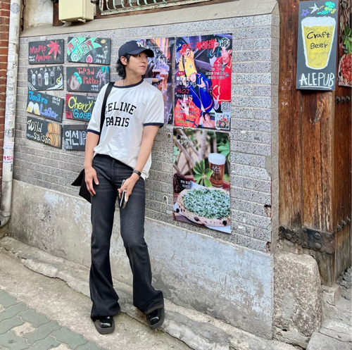 写真を見てみると白Tシャツ&デニムのスタイル抜群ショットを披露している。また、背景には最近ソウルで注目の観光スポット鐘路(チョンノ)区にある益善洞(イクソンドン)の街並みが収められている。
