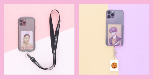 フォンタブは、薄い素材で作られたカード型の製品で、スマホにストラップをつけられるようにするアイテムです。 カード型の写真やイラストの先にストラップやチャームなどをつけられる部品がついており、透明なスマホケースの中に入れて使用します。