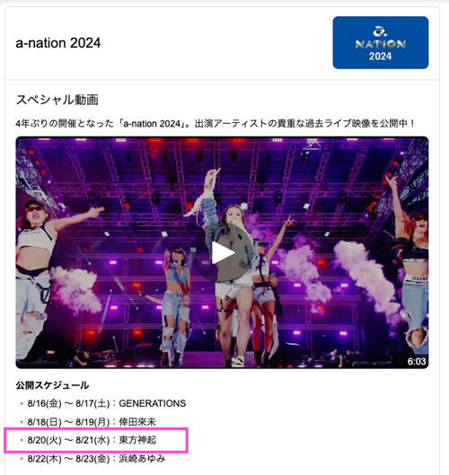 💫本日より特別企画がスタート💫Yahoo!検索で「a-nation 2024」と検索すると