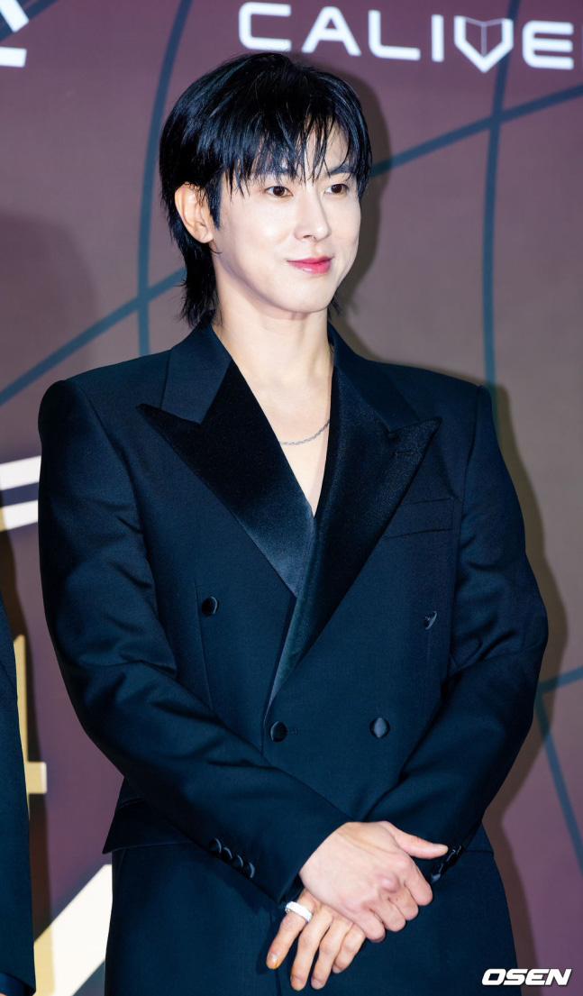 ユノ·ユンホ、情熱ユンホの手挨拶 東方神起のユンホが16日午後、仁川にある公演場で開かれた「第1回コリアグランドミュージックアワード(2024KGMA)」レッドカーペット行事に参加しポーズを取っている。
