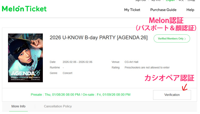 韓国のMelonチケットサイトでチケット購入することはできません。