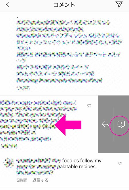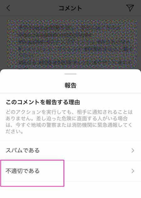 自分のインスタ投稿に来たコメントが、不適切だった場合