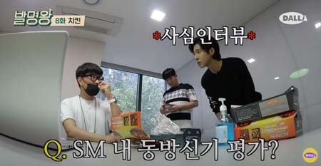 また、ユンホは自身の所属事務所の社屋で撮影を進めるだけに“本陣”の利点を十分発明に活用して、ちょっと変わった面白みを増します。 SM職員に「発明王」のプログラムに対する意見を聞いたり、発明品に対するリアルタイムのフィードバックを要請することも。 特に、ユンホはSMの代表取締役に「カメラちょっと借りて使ってもかまいませんか?」と、長くなる撮影時間を予告してさすがな発明狂気に対する期待を集めました。