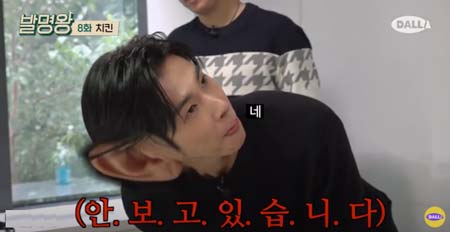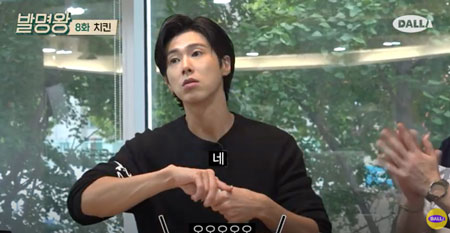 「発明王」で「東方神起」のユンホが、チキン食べる時の不便さを解決するための発明狂気を爆発させます。