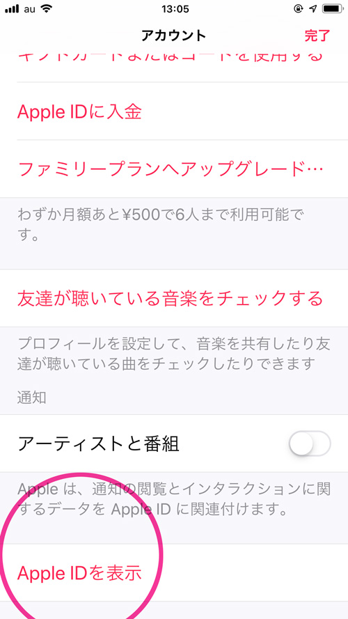 画面をスクロールしていくと一番下に『Apple IDを表示』