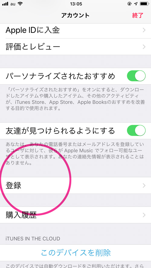 4.下にスクロールすると、中程に『登録』を発見!!